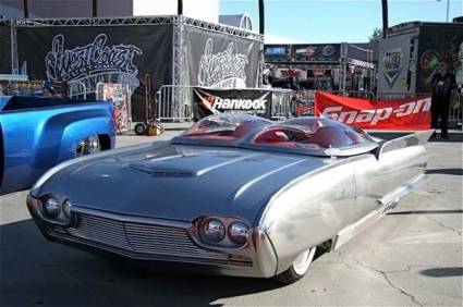ThunderFlite T-Bird создали Сьюзи и Дин Арнольд. Кажется, что машину буквально вырвали из какого-нибудь фильма про 50-е. Обтекаемые формы, огромная база, характерные плавники на багажнике… Но нет, модель более чем современна. За основу взят Ford Thunderbird 1961 года и идея о создании такого концепта, который был бы актуален для современника донора. Результат впечатляет: T-Bird смотрится своим парнем в компании 50-летних.