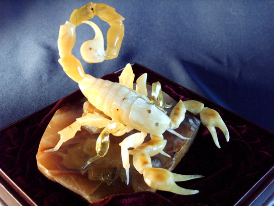 «Пообедал» материал: бивень мамонта, янтарь, агат.