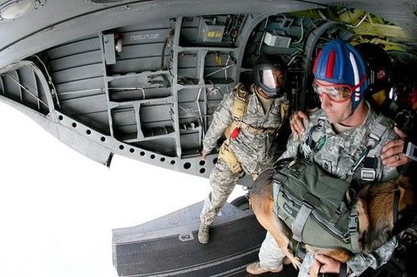 Этот отважный пес прыгает с парашютом и ему это очень нравится.
