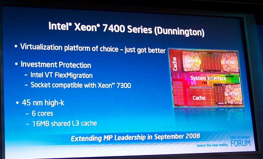 "Новые процессоры помогут ИТ-менеджерам увеличить сложность корпоративной инфраструктуры без необходимости покупки дополнительного оборудования. Xeon 7400 представляют собой стабильное платформенное решение для многопоточных сред и приложений, таких как базы данных. Благодаря увеличенному количеству ядер процессоры имеют больший объем разделяемой кеш-памяти и аппаратную поддержку технологий виртуализации (Intel Virtualization Technology - прим)", - говорит Килрой.