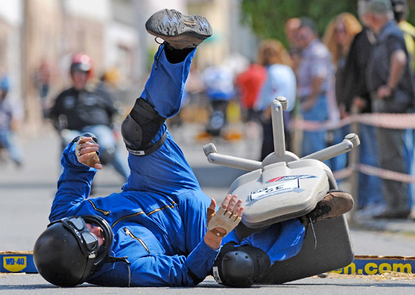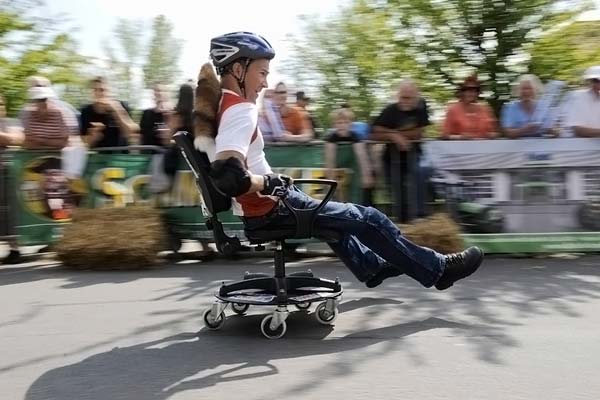 В Германии прошел чемпионат по езде на офисных креслах "German Office Chair Racing Championship". Зрелище захватывающие, с учетом того, что стулья всячески переделывали и трасса была с рампами и прочими виражами.