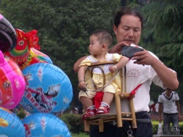 Все знают, что для переноса детей используется специальная сумка-кенгуру, но до Китая, видимо, это новшество еще не добралось, они используют стул.