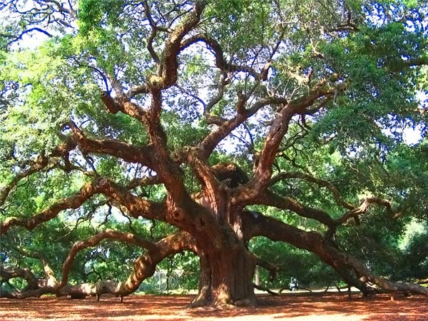 Дуб Ангел растет в Южной Каролине в США, его возраст оценивается примерно в 1.500 лет. Дуб Ангел имеет высоту приблизительно 20 метров, ствол 2,7 метров в диаметре и его крона имеет площадь 1600 м2. Его длиннейшая ветка имеет длину 27 метров. Он пережил бесчисленное количество ураганов, наводнений, землетрясений, был серьезно поврежден ураганов Hugo в 1989 году, но с тех пор востановился.