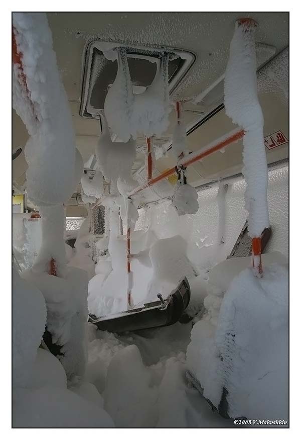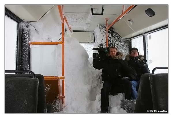 Эти фото были сделаны прошлой зимой. В Норильске выпало осадков больше, чем хотелось бы. Больше всего пострадало направление Норильск — Надежда (завод) — Кайеркан. Остальные направления просто не возили народ. Шоу было прикольное. К стати фото зделаны после экстимальной поездочки, потому что нулевая видимость для этого участка зимой — можно сказать норма :) Автобусы просто ходят колоннами по несколько штук и в сопровождении снегоуборочной техники если требуется. Один из таких автобусов простоял несколько часов так же, правда он еще все это время был под завязку набит людьми. Что в нем творилось даже не представляю. В автобусе не повернутся и не вздохнуть, а выйдешь на улицу — тебя больше не найдут...