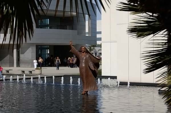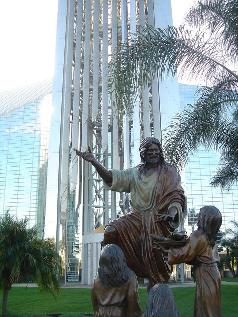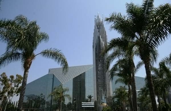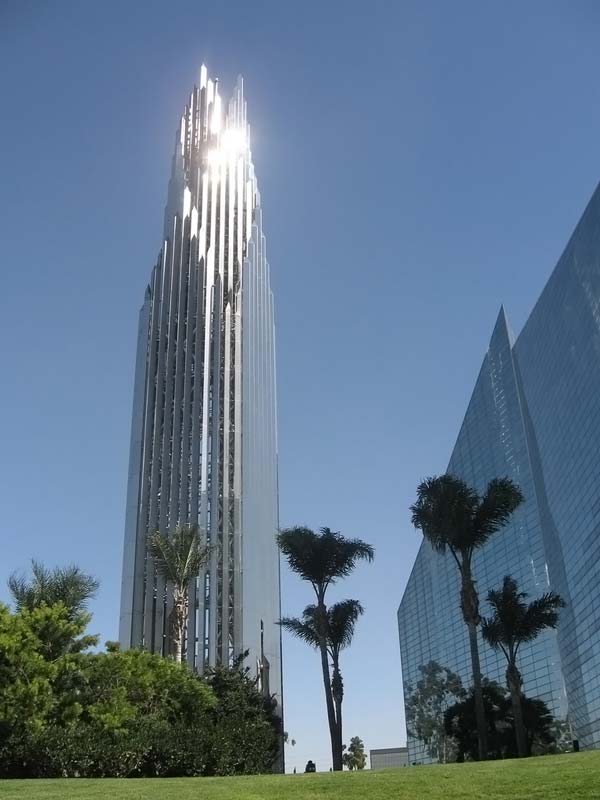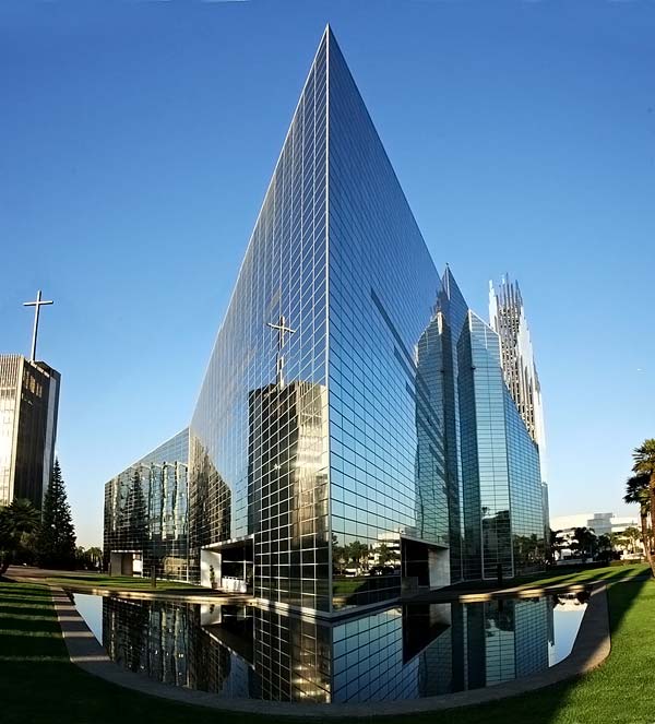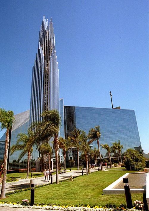 Это самая голливудская церковь в мире и одновременно самое большое сооружение из стекла. И название ему – Хрустальный Собор (The Crystal Cathedral). Собор построен из более 12000 кусочков зеркального стекла, соединенного серебристой металлической конструкцией, острый шпиль невероятной колокольни устремляется в небо, дополняет фантастическую картину небольшое озерцо, окруженное зеленью газона, в которое упирается здание одним из своих острых углов. А еще внутри установлен самый крупный в мире орган, в котором более 16 тысяч труб. Собор был освящен в 1980 году Преподобным Робертом Шуллером (Robert Schuller), который известен в США как пастор первой в Калифорнии «drive-in» церкви.