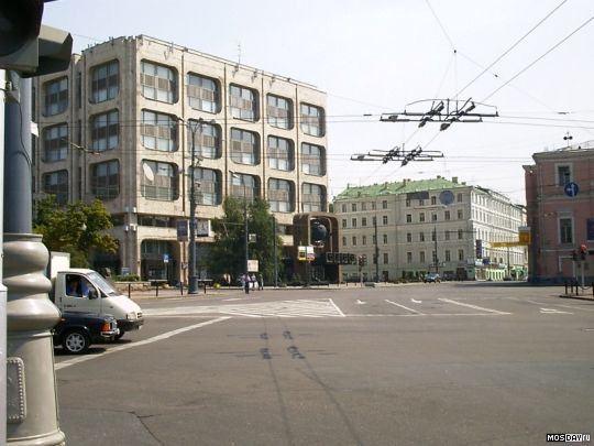 Вышло вот что. Причём, здание ТАСС должно было быть в 20 этажей высотой, советский начальник по неизвестной причине запретил строить выше того, что получалось. Поэтому входная группа смотрится несколько странно в общем масштабе.