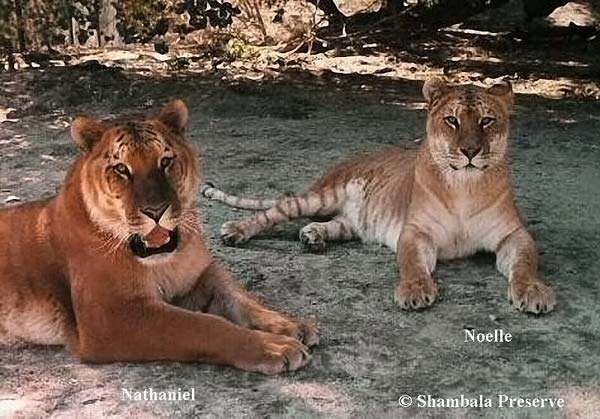Лигры более распространены, чем тигоны. Шерсть у них оранжево-золотистая с неяркими полосами по бокам и спине и пятнами на животе. Эти пятна — от отца, ведь собственно львята рождаются пятнистыми. Иногда у лигра-самца отрастает даже грива, но не такая большая, как у льва. Кроме того, они, как и их матери-тигрицы, любят и умеют плавать, а рычание, наоборот, больше напоминает львиное. Лигры — крупнейшие кошки на Земле. Стоя на задних лапах, они достигают 4 метров в высоту, а весят больше 300 килограммов. Самый большой лигр по имени Геркулес, весом как два льва, проживает в парке «Остров джунглей» в Майами. В отличие от самок лигры-самцы обычно бесплодны, поэтому их нельзя разводить.