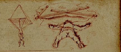 Всем известен «парашют Леонардо», а вот нарисованный на следующий странице «нераскрывшийся парашют Леонардо» почему-то всегда оставляют без внимания. Так вот же он!