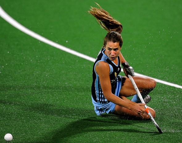 14) Падение аргентинки Даниелы Струога во время матча Чемпионата Trophy по хоккею на траве против команды Голландии, Сидней, 16 июля. (GREG WOOD/AFP/Getty Images)