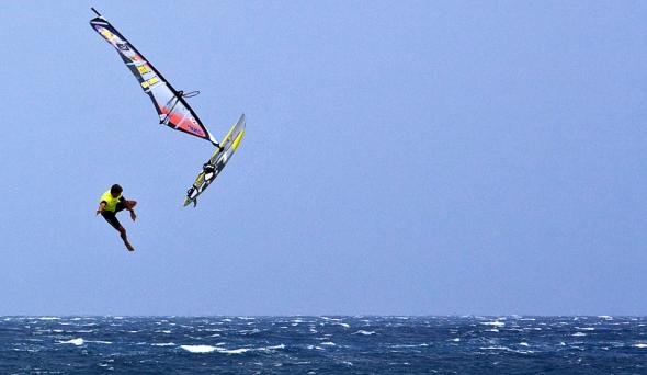 15) Падение Рикардо Кампелло, во время попытки показать трюк, в соревновании по виндсерфингу Gran Canaria Grand Slam, проходящем у берегов Канарских островов, 17 июля. (REUTERS/Borja Suarez)