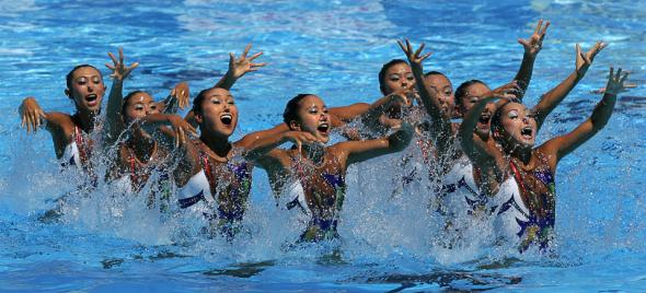 1) Сборная Китая завоевала бронзу в командном синхронном плавании на Чемпионате Мира по водным видам спорта в Риме, 19 июля. (AP Photo/Gregorio Borgia)