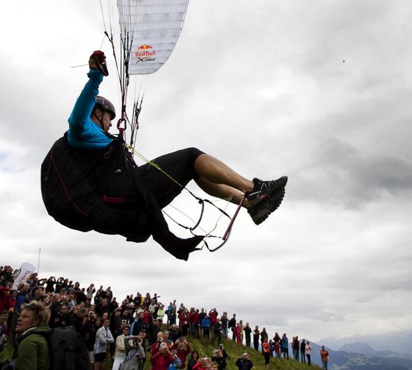 10) Кристиан Амон взлетает со старта гонки на парапланах Red Bull X-Alps в Зальцбургерланде 19 июля. 30 участников должны преодолеть пешком и на парапланах 800 км. между Зальцбургом и Монако, это путешествие займет у них минимум 10 дней. (REUTERS/Dean Treml/Red Bull Photofiles)