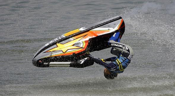 11) Выступление россиянина Арсения Матанцева во время соревнований по фристайлу на Чемпионате России по аквабайкингу, проходящего в Москве, 19 июля. (AP Photo/Misha Japaridze)