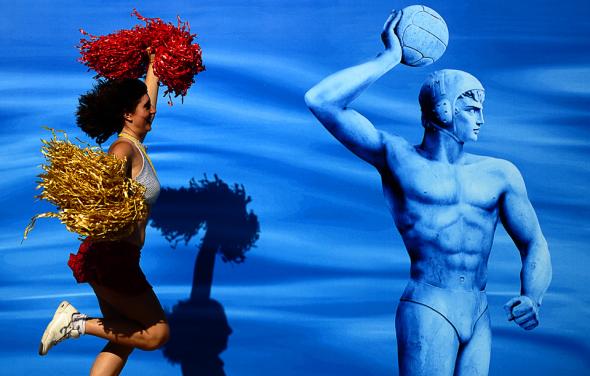 4) Выступление чирлидерз в перерыве матча по водному поло на Чемпионате Мира по водным видам спорта в Риме, 20 июля. (FILIPPO MONTEFORTE/AFP/Getty Images)