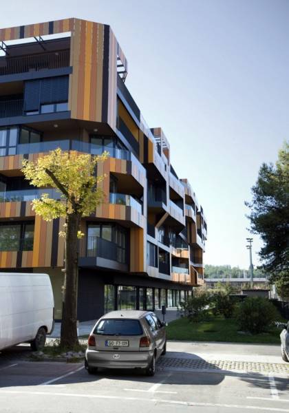 Этот жилой дом построен в центре города Нова Горица, Словения. Архитектурное бюро OFIS arhitekti решило создать фасад здания таким «полосатым» не только в декоративных целях. Город известен в Словении как самый жаркий летом и один из самых морозных зимой. Полосы фасада создают дополнительное пространство для жильцов, а также защищают их от слишком низкой и высокой температуры за окном. Кстати, конструкция окон, балконов, лоджий и карнизов, создающих те самые полосы, разрабатывалась также с намерением увеличить естественную освещенность комнат, чтобы жильцы меньше тратили электроэнергию.
