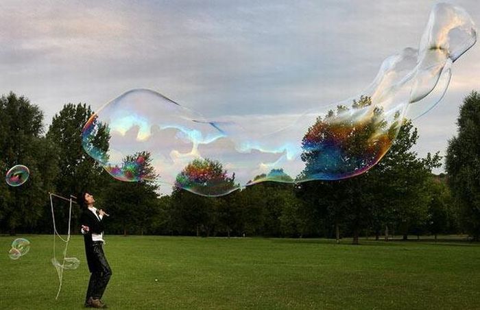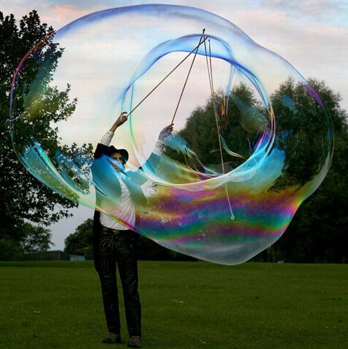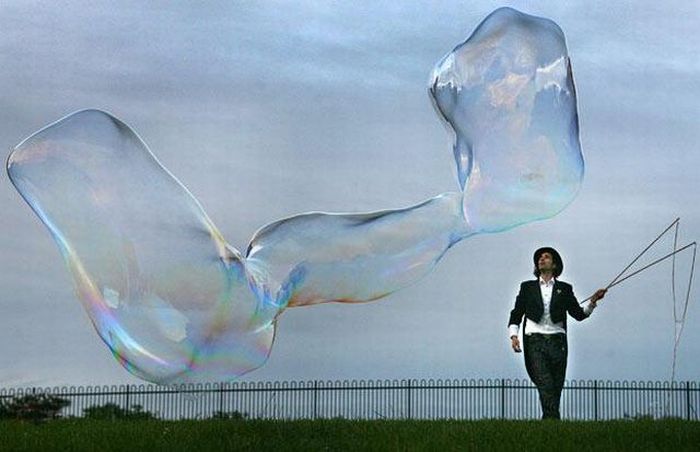 Этому англичанину по имени Sam Heath 37 лет. И вот уже на протяжении двадцати лет он занимается тем, что надувает мыльные пузыри. И добился в этом деле по-настоящему больших успехов