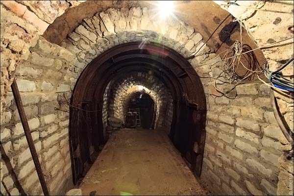 Переходим в магистральный тоннель. Конструкция сводов выдержит проезд по поверхности 60-тонного грузовика (есть заключение экспертной комиссии). В магистральном тоннеле высота сводов примерно 150 см.