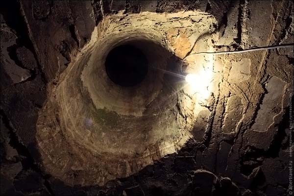 Специально созданная шахта для выемки грунта. Как только будет пройден овраг (осталось еще около 20 метров), там будет поставлен вестибюль для входа.