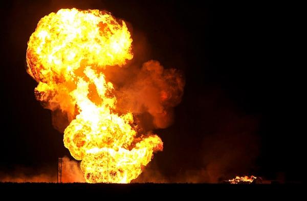 Высота пламени после взрыв газопровода в городе Бушланд, штат Техас, рано утром в четверг достигала 120 метров.