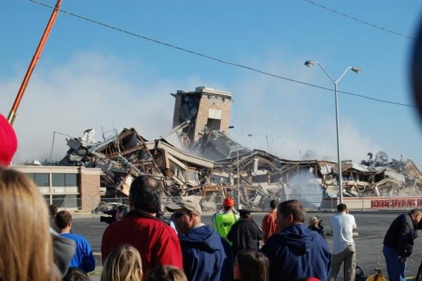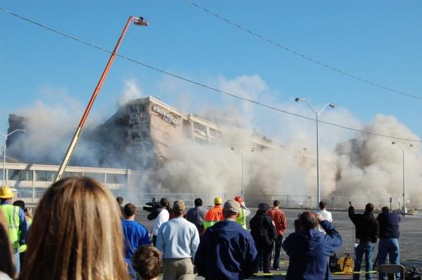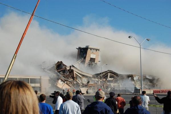 Подробные фотографии, на которых запечатлен подрыв здания.