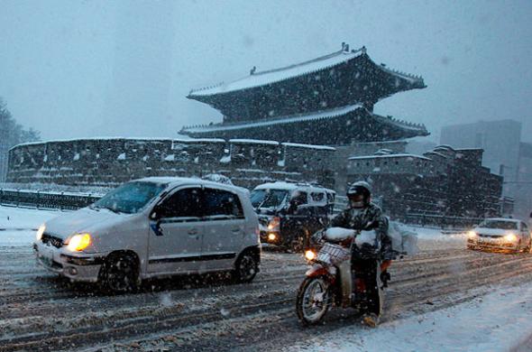 В Корее ситуация не лучше. Белым-бело в Сеуле. Jo Yong-Hak / Reuters