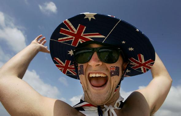 Мужчина празднует День Австралии на пляже Бонди. Праздник посвящен первому прибытию кораблей к берегам Австралии 26 января 1788 года. (Sergio Dionisio)