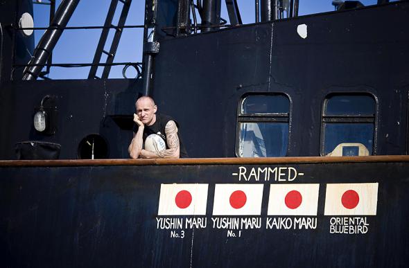Капитан судна общества сохранения морских природных ресурсов “Ady Gil” плывет в Фремантл (Австралия), после того, как китобойное судно «Shonan Maru» протаранило его судно. Члены экипажа успели покинуть тонущее судно. (Tony McDonough/European Pressphoto Agency)