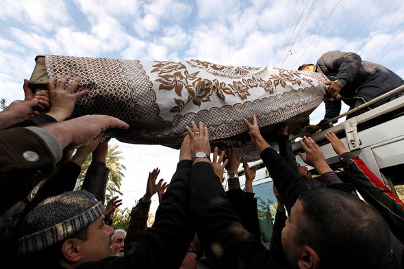 Люди готовятся похоронить родственника, погибшего в результате взрыва в Багдаде. Террорист-смертник убил, по меньшей мере, 21 человека, и ранил десятки других. (Hadi Mizban/Associatd Press)