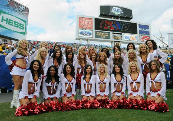 Черлидеры NFL (группа поддержки) позируют для группового фото на матче кубка «Super Bowl XLIII» на стадионе «Рэймонд Джеймс» в Тампе (Флорида). (UPI Photo/Kevin Dietsch)