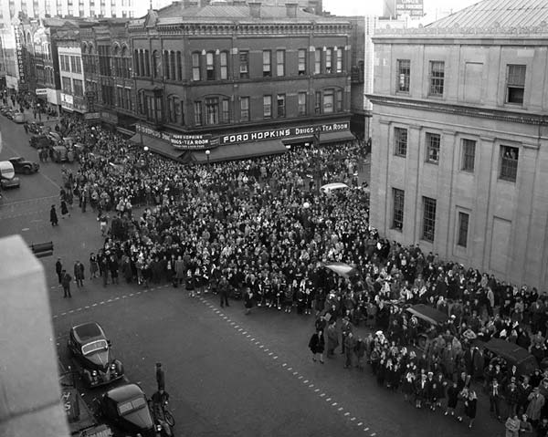 1935 год. Бенни и Бетти Фокс танцуют на 45–сантиметровом диске, укрепленном на шесте высотой почти 31 метр. Журналисты настаивали на том, что на зрелище собрались посмотреть около 100 000 человек.