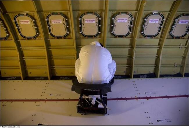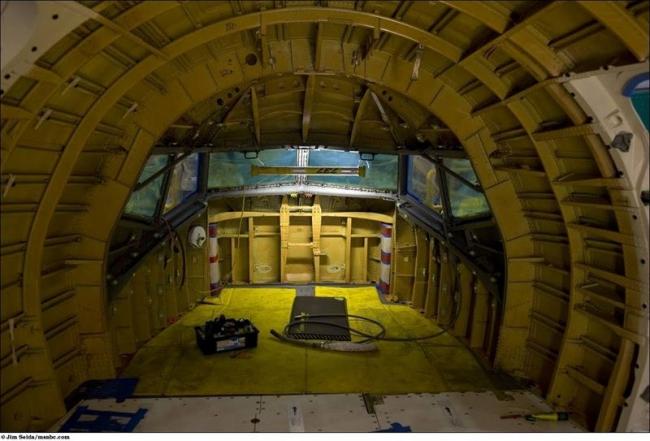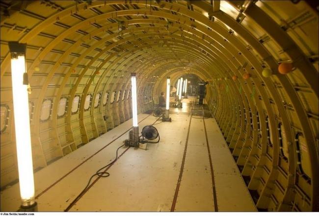 Внутри фюзеляжа развешаны теннисные мячики, которые позволяют предотвратить травмы рабочих об острые выступающие детали.