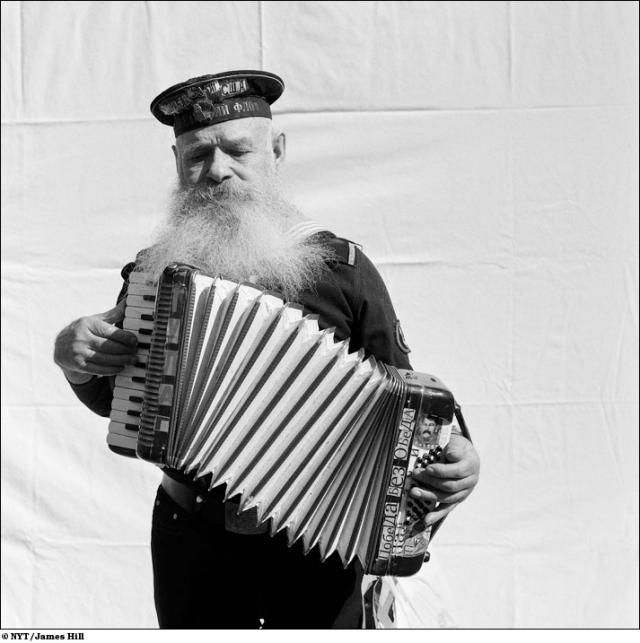 “Они справедливо считаются героями в российском обществе”, пишет г-н Хилл. “Но я не пытался снять их в героических позах.