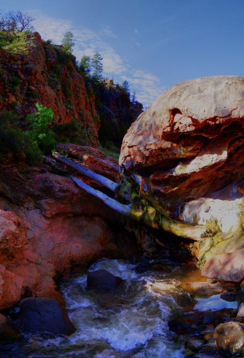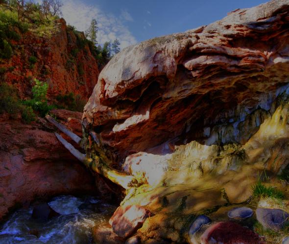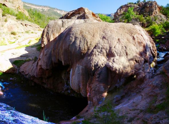 Первая остановка. Не доезжая пары миль до конечного пункта, прямо посреди реки стоит интересное карстовое образование. Soda dam. По Русски будет лучше как Карстовая плотина. Перекрывает собой местную реку.