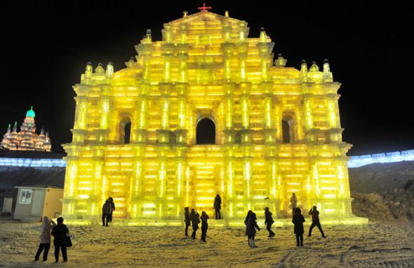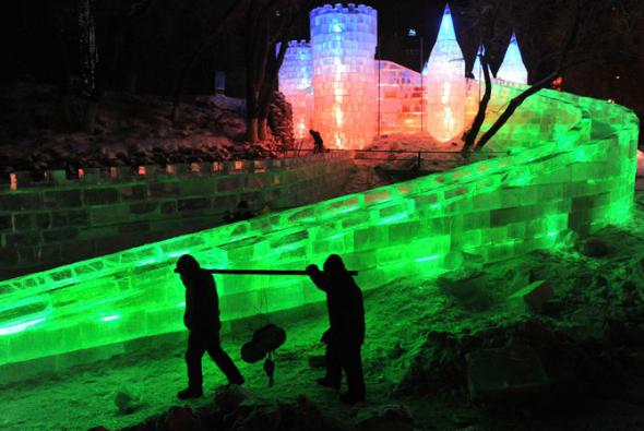 В холодном северо-восточном Китае в городе Харбине проходит 26-ой Международный фестиваль снега и льда. В нескольких парках города можно найти массивные здания изо льда, нависшие над рекой Сунхуа, большие ледяные скульптуры в натуральную величину, ледяные горки, еду и напитки. Ночью включаются огни, и замерзшие зрители видят, как скульптуры подсвечиваются как изнутри, так и снаружи. Фестиваль в этом году открылся 5 января и продлится до февраля. Очень красивые фотографии, сделанные до открытия фестиваля и в ночь его открытия.